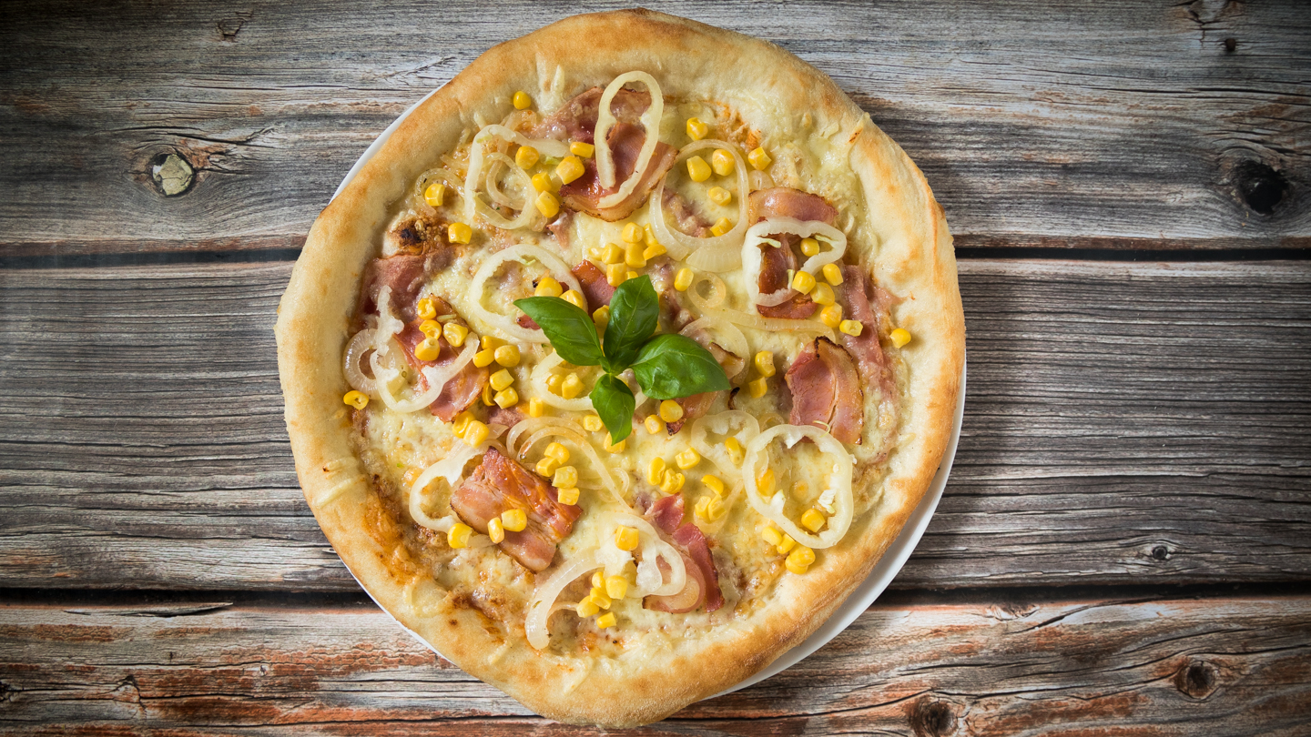 (paradicsomszósz, sajt, sonka, bacon, kukorica, paprika, hagyma) 1 adag Rántott hagymakarika, 1 db választható üdítő (0, 33l), 1 adag mártogatós