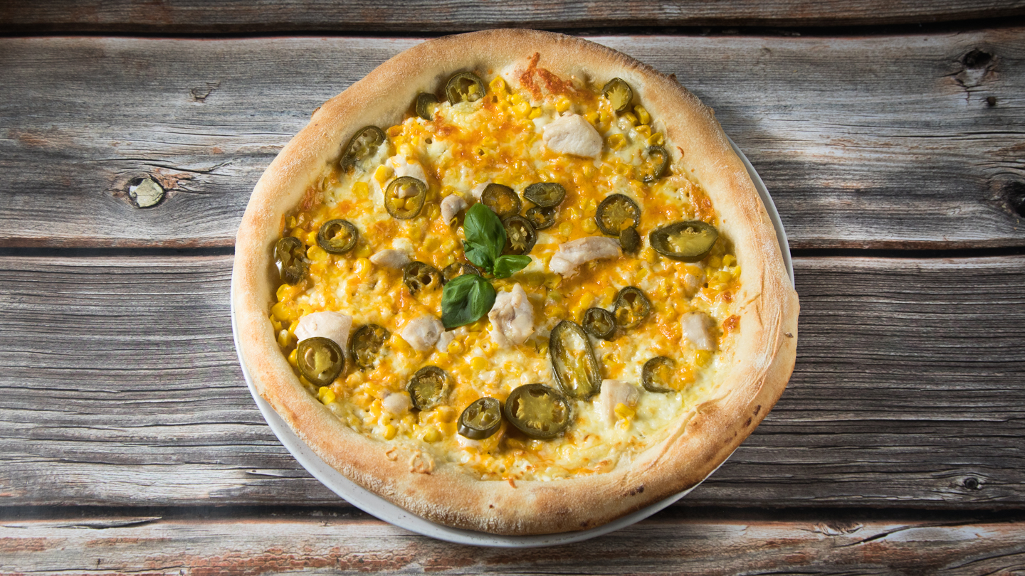 (sajtkémes alap, sajt, csirkemell kockák, csípős jalapeno paprika, kukorica, cheddar sajt) 1 adag Rántott hagymakarika, 1 db választható üdítő (0, 33l), 1 adag mártogatós