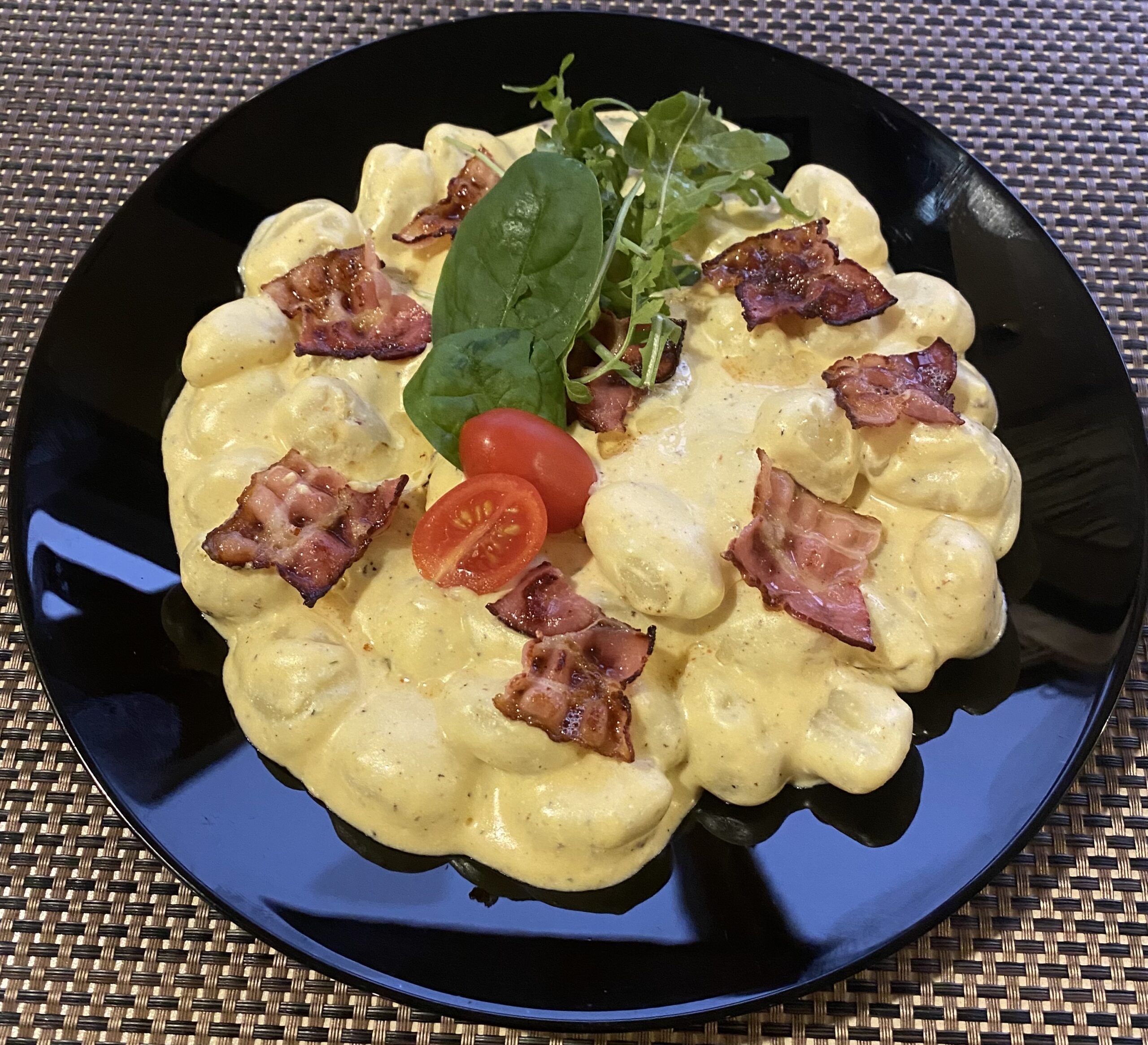 Cheddar sajtos, baconös -tejszínes Gnocchi