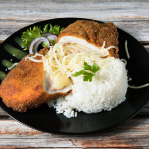 Original price was: 3.550 Ft.3.250 FtCurrent price is: 3.250 Ft.MegnézemRántott csirkemell sonkával, sajttal és ananásszal töltve.