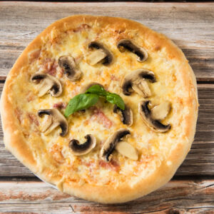 paradicsomszósz, sajt, sonka, gomba