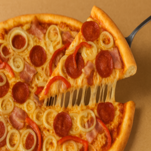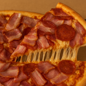 Original price was: 5.590 Ft.4.590 FtCurrent price is: 4.590 Ft.Kosárba teszempizzaszósz, hagyma, trappista sajt, csípős szalámi, bacon, paprika, Extra gazdag feltéttel, bőséges sajttal – nem spórolunk