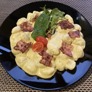 Cheddar sajtos, baconös -tejszínes Gnocchi